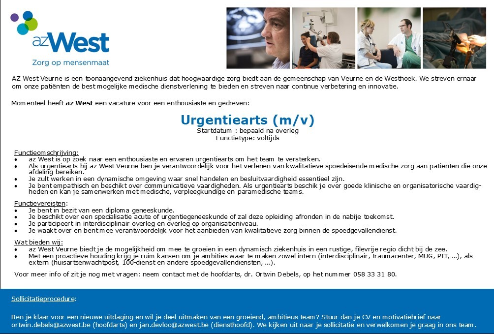 Vacancy for ED physician in AZ West Veurne (full-time) -